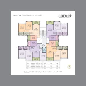 Surbhi Samrudhi Dhanori provides 2 BHK, 2.5 BHK and 3 BHK flats in Dhanori Pune. 2 BHK apartments will be priced beginning 57 Lac and above with area of 660 sq.ft and above. The 2.5 BHK units come at 66 Lac and above with 770 sq.ft and above and 3 BHK flats come at 80 Lac and above with 930 sq.ft and above. Simplex and duplex layouts are also well planned in the project and the floor plans are detailed to have a better understanding of space.